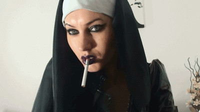 Sister Celine is a sexy nun that is ready to listen to your confession. She is smoking a cigarette and she blows the smoke in your face because she knows that your erotic dreams consist of. She knows that you love to watch her takes drags of her cigarette and she knows that you love to have the smoke blown on your face and she knows you love to watch her smoke.