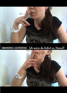 This sexy blonde babe is a goddess and she knows it. She is hot shit and she knows that she can make a puny wimp slave do exactly what she wants. She wants you to get down on your knees right now so she can use you as her own human ashtray. She wants you to put out your tongue just so she can ash all over it with her cigarette.